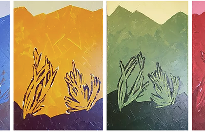 Idée 1 : Assemblage de "palettes" de peinture acrylique, retravaillées aux crayons de couleurs. Dans un carnet ?